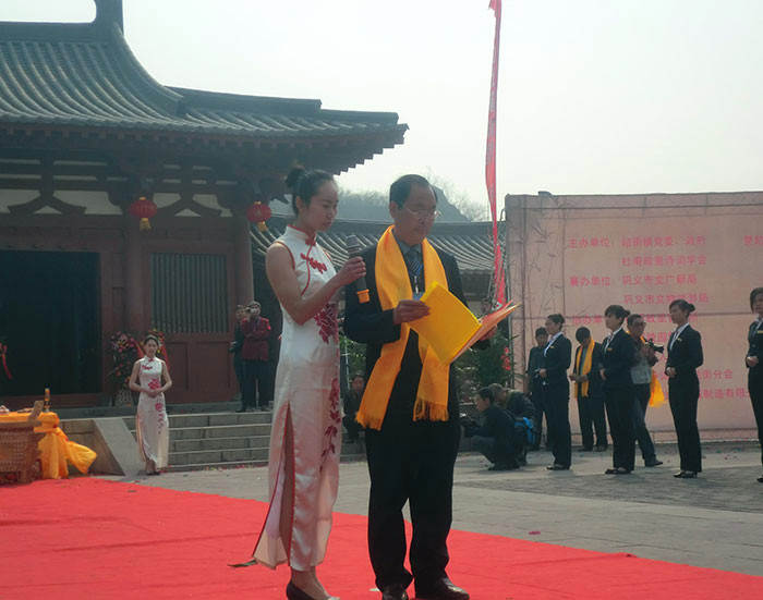 由鞏義市杜甫詩詞學(xué)會發(fā)起,杜甫故里和杜甫陵園協(xié)辦?;顒又卦诰拺咽ベt、弘揚文化,活動有祭祀上香、宣讀祭文、吟唱頌歌、樂舞敬拜、陵園掃墓等議程組成,屆時將會由來自省、市的各界領(lǐng)導(dǎo),及各類杜甫研究機構(gòu)、杜氏宗親及我市的大中小學(xué)生等數(shù)千名人員參加祭拜詩圣活動。由我河南省杜甫機械有限公司主辦并贊助的大型拜祭大典大概在十一點圓滿結(jié)束,此意義重大而深遠(yuǎn)。